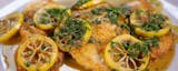 Chicken breast fried in a light batter, topped with a creamy lemon sauce.
